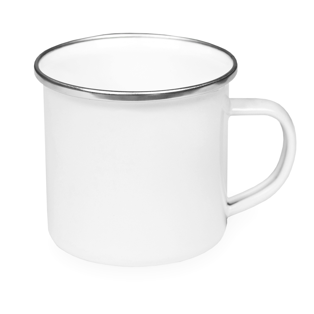 Smaltovaný plechový hrneček s nerezovým lemem o průměru 80 mm a objemu 300 ml potěší každého dobrodruha.